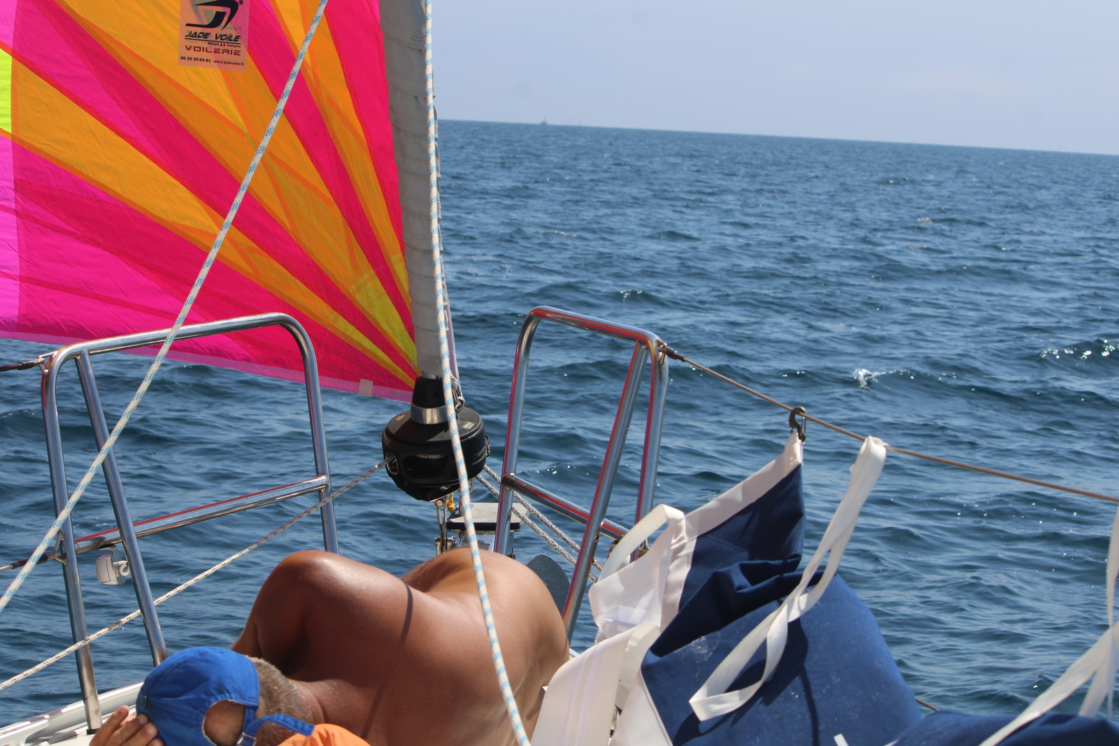 Très belle croisière naturiste, avec un temps superbe (vent idéal, soleil, luminosité parfaite, mer très calme), dans une zone de navigation sublime. Outre la navigation, dont tout le retour au portant avec le Genaker, nous avons put nous baigner et faire des marches sur les chemins côtiers, et apprécier la plage naturiste de Kerver. Et de bonnes crêperies bien sûr. Superbes souvenirs.